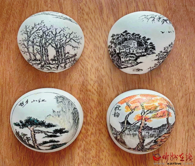 他的幾番“折騰”、數(shù)度“顯擺”、執(zhí)著傳承“非遺”的情結(jié),被制作成電視短片,被寫成技藝故事,一時間街坊鄰里都知道小區(qū)里有一位和蛋殼有感情的“老頑童”,故鄉(xiāng)的新朋舊友及過去的同事,也紛紛為他“蛋殼上作畫”的行為點贊。