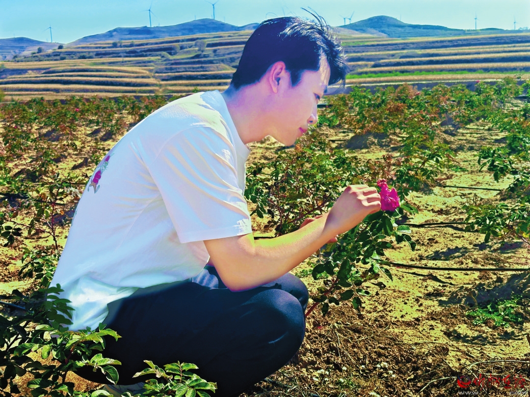 他了解到食用玫瑰有銷路但縣域內(nèi)沒有種植。在與村“兩委”商議后建議村民種植食用玫瑰。這個想法得到了鎮(zhèn)黨委的認可,先在圪坨莊村試種8畝、八角村試種2畝。試種初期出現(xiàn)了問題,田里每日需人工澆灌,看管困難。他又建議村“兩委”鋪設管道建立滴灌系統(tǒng)和安裝監(jiān)控來實現(xiàn)精準管理。他還與村“兩委”商議,利用光伏資金,設立工作崗位,從建設種植到開花期日常維護,用工量已達100余人次,村民的收入也隨著玫瑰花開而增加。玫瑰示范園的建成,為農(nóng)產(chǎn)品深加工、發(fā)展鄉(xiāng)村旅游和補鏈月餅產(chǎn)業(yè)奠定了基礎。