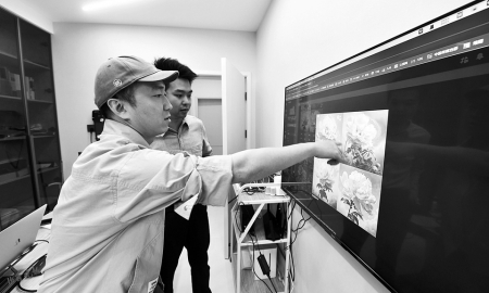 當(dāng)下,“犀牛創(chuàng)意”傳媒工作室承接了一家老廠區(qū)的老物件展覽業(yè)務(wù),田帥和韓宇帶著自己的創(chuàng)意向AI“提問”,AI生成了文案及一系列設(shè)計(jì)圖稿,由甲方選擇后他們再精細(xì)加工,工作高質(zhì)高效的同時(shí)節(jié)省了大量的人力物力,降低了時(shí)間和經(jīng)濟(jì)成本。