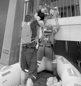 這是白龍華第一次參加洪澇災(zāi)害的救援,她被隊(duì)員們的勁頭感動?!八虑闆r復(fù)雜,不可控的因素太多,各種雜物堆積,橡皮艇被淹沒在水中的彩鋼板劃破,但無論遇到什么情況,隊(duì)員們都沖鋒在前,安全轉(zhuǎn)移受困者。”白龍華說。