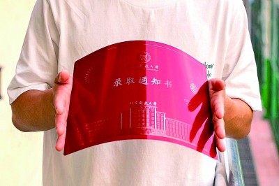 2023版錄取通知書,不但繼續(xù)采用3D手工制作,而且材質(zhì)更薄更堅挺,厚度差不多和3張普通A4紙相當(dāng),可任意對折、側(cè)壓,甚至可以像紙張一樣卷曲成軸。