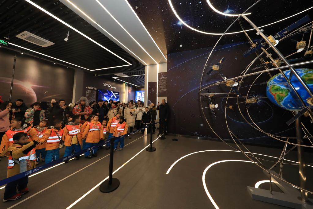 1月6日,“小砂糖橘”參觀哈爾濱工業(yè)大學(xué)航天館。新華社發(fā)