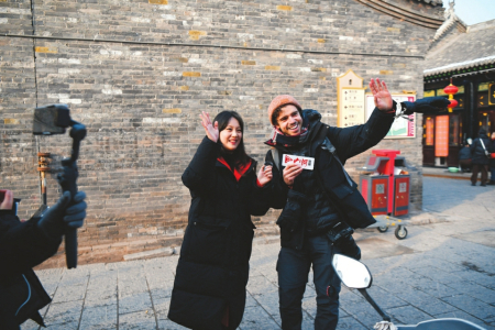 龍祥鳳瑞迎新春、龍躍鳳舞鬧新春、龍章鳳彩賀新春,熱鬧的平遙中國年吸引不少外國友人來打卡,吃美食、看文化、當回“晉商少奶奶”?!捌竭b古城歷史悠久,是曾經的‘中國華爾街’,在全世界都非常著名,晉商票號讓人感到震撼?!迸D月廿七中午,剛剛結束山西大同行程的葡萄牙游客Joao與哥哥來到平遙古城。Joao是一位中國歷史愛好者,談起腳下的平遙古城連連豎起大拇指,“我們特意把平遙的旅程放在春節(jié)這段時間,要轉轉古城的歷史遺跡,還要看看古城的特色演出,感受一番地道的中國年?!?/p>