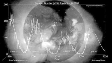 自1755年觀測到第一個太陽活動周期開始,人類現在正經歷第25個太陽活動周期的上升階段??梢灶A計,太陽活動將逐漸增加,太陽耀斑和日冕物質拋射發(fā)生的次數將越來越多。