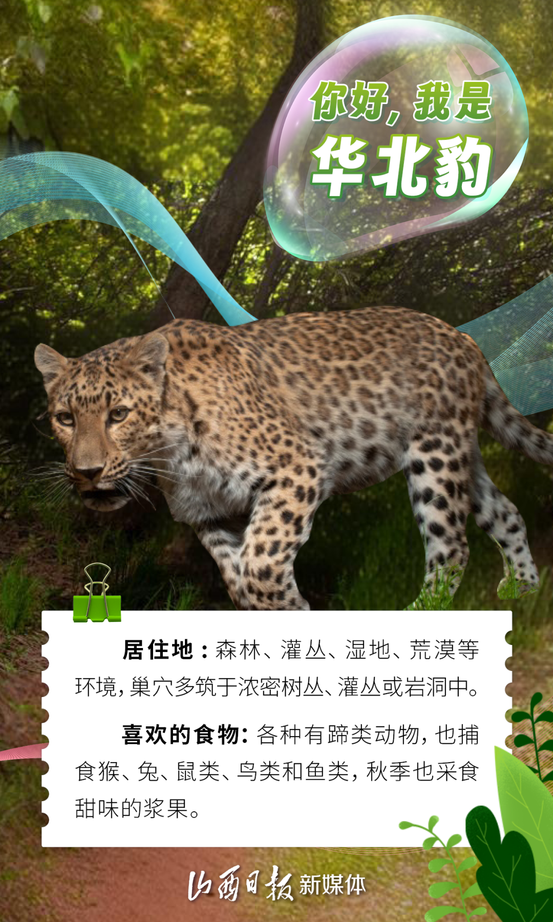 褐馬雞、華北豹、原麝、黑鸛