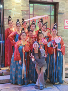 “忻青年”第一個視頻的標(biāo)題是《跟著我們在古城街道上炫起來,民族的才是世界的》。最初的賬號只是推送藝術(shù)團(tuán)在演出之余的短視頻,用于宣傳沉浸式演出《遇見秀容》。民間舞較大眾化,有熟悉的旋律,廣場舞動作簡單又生活化,容易普及。通過短視頻讓更多的人了解忻州古城,看見《遇見秀容》團(tuán)隊演出之余的生活。