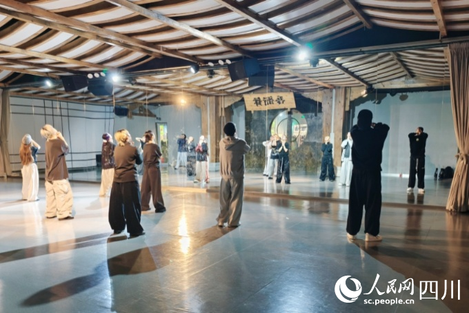 東郊記憶園區(qū)HELLODANCE吾街舞工作室內(nèi),街舞愛(ài)好者正在練習(xí)舞蹈。人民網(wǎng) 趙祖樂(lè)攝
