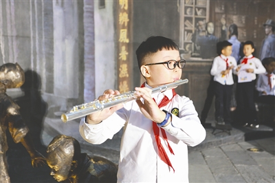 “爺爺奶奶、叔叔阿姨、小朋友們,大家晚上好!這次表演是我們給石埡子小學(xué)募捐的一次公益活動(dòng)。2013年,泡桐樹小學(xué)開始對(duì)口支援德陽(yáng)市中江縣集鳳鎮(zhèn)的石埡子小學(xué)……”9月底,來(lái)自泡桐樹小學(xué)2017級(jí)4班的同學(xué)們匯集在棗子巷街口,一場(chǎng)由孩子們自主籌備的“泡棗音樂會(huì)”在這里上演。據(jù)了解,這是七月以來(lái),孩子們?cè)谶@里進(jìn)行的第三場(chǎng)演出。