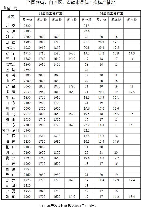 | 最低工資表來了!這些地區(qū)月最低工資≥2000元 |