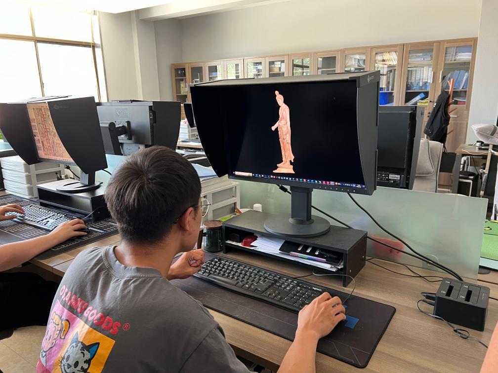 工作人員對(duì)彩塑進(jìn)行三維重建。新華社記者徐壯攝