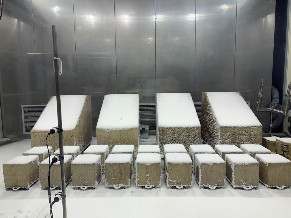 在國(guó)內(nèi)首個(gè)文物保護(hù)領(lǐng)域多場(chǎng)耦合實(shí)驗(yàn)室,4塊覆蓋著厚厚冰雪的土方吸引了記者們的注意。雨雪風(fēng)霜是實(shí)驗(yàn)室的模擬對(duì)象,從莫高窟等地取來(lái)的土石將經(jīng)受各種氣象條件,以揭示石窟寺風(fēng)化的奧秘。