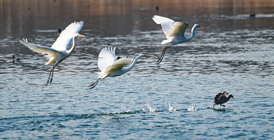 2月18日,正值雨水時(shí)節(jié),太原汾河濕地公園呈現(xiàn)出一派生機(jī)勃勃的景象。河水潺潺流淌,冰消雪融,白鷺、紅嘴鷗、白骨頂雞等野生鳥類在水面盡情嬉戲,奏響了春天的樂章。