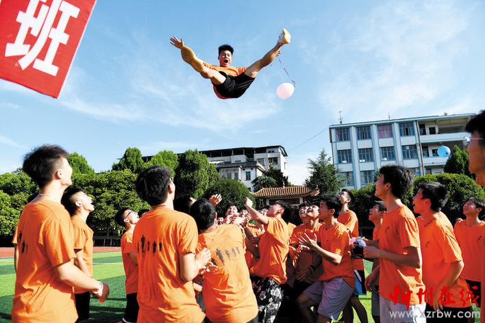 7月4日,湖南省永州市藍山縣第二中學的高三學生將同學拋起。
