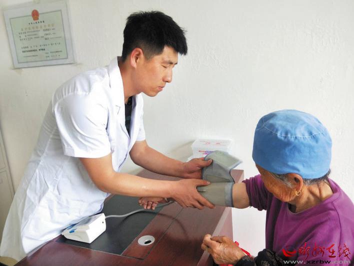 靜樂縣把健康扶貧和關(guān)愛送到村民家門口,為貧困群眾提供了實實在在的便利。圖為近日中莊鄉(xiāng)史家?guī)X村鄉(xiāng)村醫(yī)生邱晉德在為村民測量血壓。 閆曉梅 攝