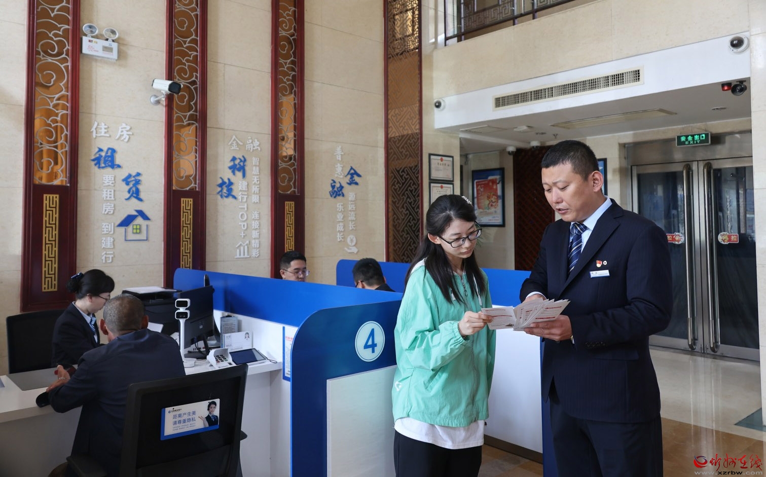建行五臺山風景區(qū)支行的工作人員正熱情地為客戶進行業(yè)務宣傳。在營業(yè)大廳里,該行員工為客戶耐心細致地講解各項金融業(yè)務的特點和優(yōu)勢,從專業(yè)的角度為客戶分析不同業(yè)務的適用性,以滿足客戶多樣化的需求,讓客戶在輕松的氛圍中了解金融產品,感受建行服務的貼心與溫暖。(宮清華攝)