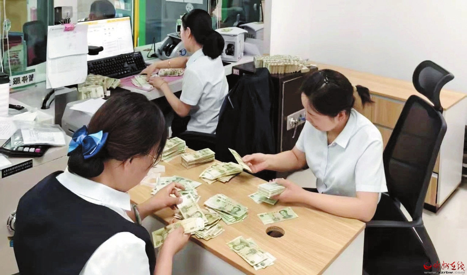 面對數(shù)量龐大且雜亂的零錢,營業(yè)部第一時間啟動應(yīng)急預(yù)案,迅速抽調(diào)多名業(yè)務(wù)骨干,成立專項(xiàng)小組,開展清分整理工作。簡單分工后,大家各司其職,迅速投入緊張工作。有的工作人員專注于初步清點(diǎn);有的憑借豐富經(jīng)驗(yàn)和專業(yè)知識,仔細(xì)核驗(yàn)紙幣真?zhèn)危_保每一筆業(yè)務(wù)準(zhǔn)確無誤;還有的將清點(diǎn)好的紙幣按規(guī)格整理、捆扎,動作嫻熟有序。