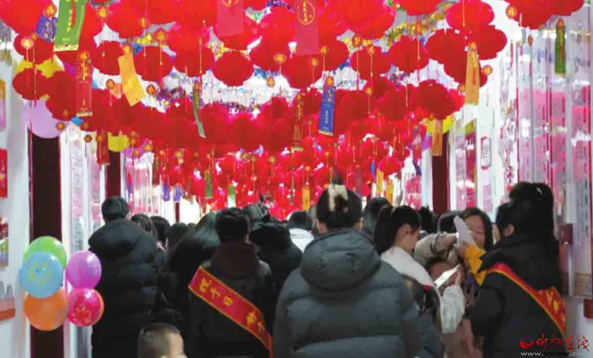 活動(dòng)現(xiàn)場(chǎng)張燈結(jié)彩,一條條燈謎在紅彤彤的燈籠下輕輕搖曳,內(nèi)容涵蓋漢字謎題、成語(yǔ)典故、民俗常識(shí)等多個(gè)領(lǐng)域,兼具知識(shí)性與趣味性。男女老少聞?dòng)嵍鴣?lái),或獨(dú)自站在謎面下沉思,或與家人朋友圍在一起熱烈討論,每當(dāng)有人成功破解謎題,周?chē)阃秮?lái)贊賞的目光。成功猜中燈謎的群眾,還能領(lǐng)取到精心準(zhǔn)備的禮品,融融暖意與歡聲笑語(yǔ)交織,將節(jié)日氛圍推向高潮。