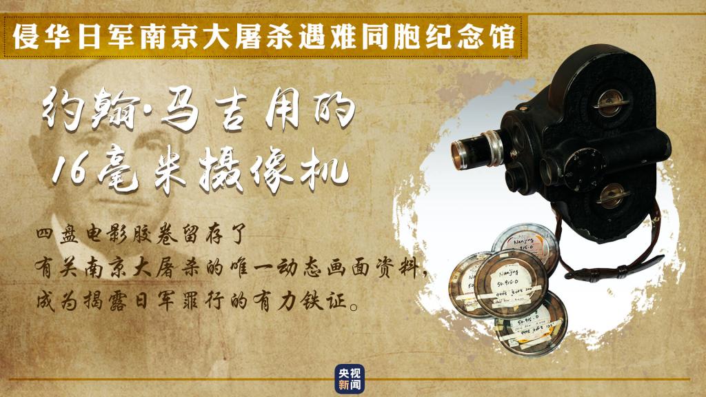 約翰·馬吉用他的16毫米家用攝像機,借職務之便偷偷拍攝,記錄下日寇的暴行。整整4盤膠卷,每一幀都是揭露日寇罪行的有力鐵證,也是留存至今的有關南京大屠殺的唯一動態(tài)畫面。
