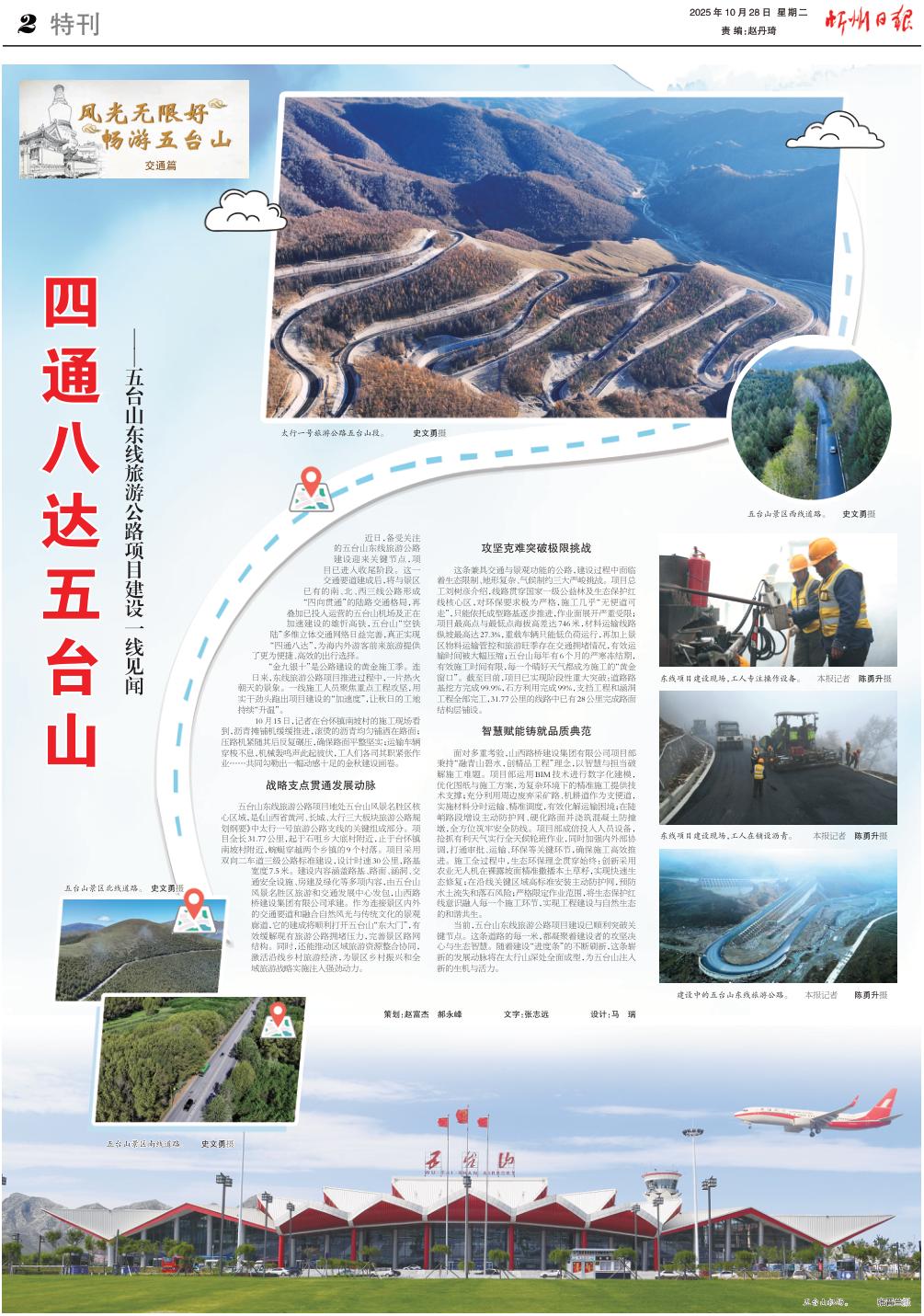 近日,備受關(guān)注的五臺山東線旅游公路建設(shè)迎來關(guān)鍵節(jié)點(diǎn),項(xiàng)目已進(jìn)入收尾階段。這一交通要道建成后,將與景區(qū)已有的南、北、西三線公路形成“四向貫通”的陸路交通格局,再疊加已投入運(yùn)營的五臺山機(jī)場及正在加速建設(shè)的雄忻高鐵,五臺山“空鐵陸”多維立體交通網(wǎng)絡(luò)日益完善,真正實(shí)現(xiàn)“四通八達(dá)”,為海內(nèi)外游客前來旅游提供了更為便捷、高效的出行選擇。