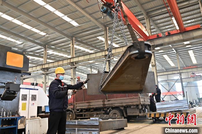 工人在車間運輸作業(yè)。 中新網(wǎng)記者 韋亮 攝