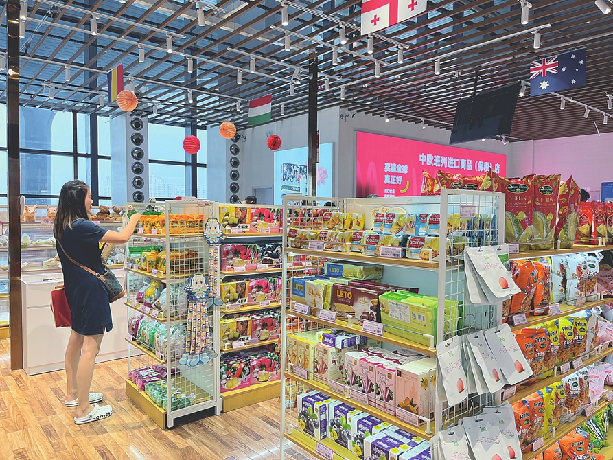 消費(fèi)者在我省中歐班列進(jìn)口商品(保稅)店選購商品。本報(bào)記者李若男攝
