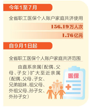 本報(bào)訊(記者高建華)記者8月30日獲悉,省醫(yī)保局近日印發(fā)《關(guān)于擴(kuò)大職工醫(yī)保個(gè)人賬戶共濟(jì)范圍的通知》,我省職工基本醫(yī)療保險(xiǎn)個(gè)人賬戶家庭共濟(jì)使用范圍進(jìn)一步擴(kuò)大,自9月1日起,全省職工醫(yī)保個(gè)人賬戶家庭共濟(jì)范圍,由直系親屬(配偶、父母、子女)擴(kuò)大至近親屬(配偶、父母、子女、兄弟姐妹、祖父母、外祖父母、孫子女、外孫子女)。