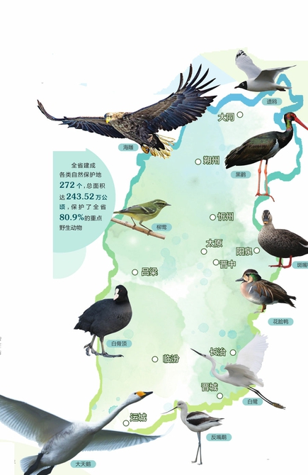 我省地處黃河流域中部,擁有森林、草原、濕地、荒漠、農(nóng)田和城市等生態(tài)系統(tǒng)類型,物種多樣性資源豐富,分布有陸生野生植物2743種,陸生野生動(dòng)物543種,遺傳資源頗具地方特色。近年來,我省高度重視生物多樣性保護(hù)工作,最大限度地為野生動(dòng)植物提供和諧友好的繁衍生息空間,三晉大地生物多樣性“家譜”不斷豐富。