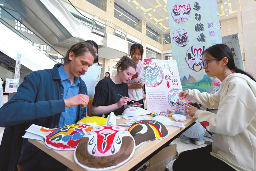 4月22日,山西財(cái)經(jīng)大學(xué)舉辦傳統(tǒng)文化嘉年華活動(dòng),外國嘉賓饒有興趣地體驗(yàn)馬勺臉譜彩繪。楊晨玉攝