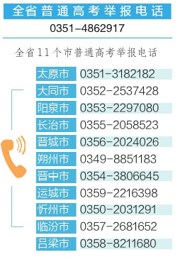 山西日?qǐng)?bào)訊(記者李林霞)為維護(hù)高考公平公正,省招考中心日前公布了今年全省普通高考舉報(bào)電話。
