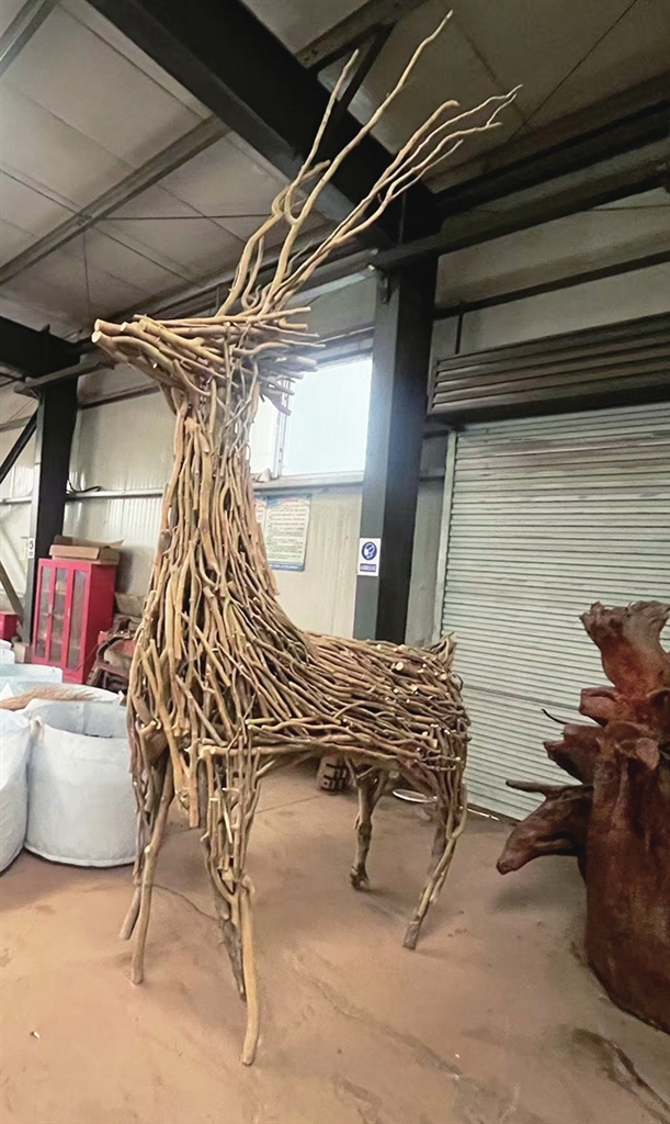 10月24日,記者在該中心看到,工作人員創(chuàng)作了大型鹿形展品及駱駝、袋鼠、犀牛等小型動物展品。這些作品生動精巧,充分保留了植物材料的自然美感,展現(xiàn)了園林廢棄物的藝術潛力。將綠廢轉化為文創(chuàng)展品,不僅開辟了一條資源化利用的“新賽道”,更將環(huán)保理念融入了藝術創(chuàng)作,為未來園林垃圾的“變廢為寶”提供了充滿想象力的發(fā)展方向。這一嘗試顯示,綠廢資源的價值挖掘正從功能層面向文化審美層面不斷深化與拓展。(劉曉亮文/攝)