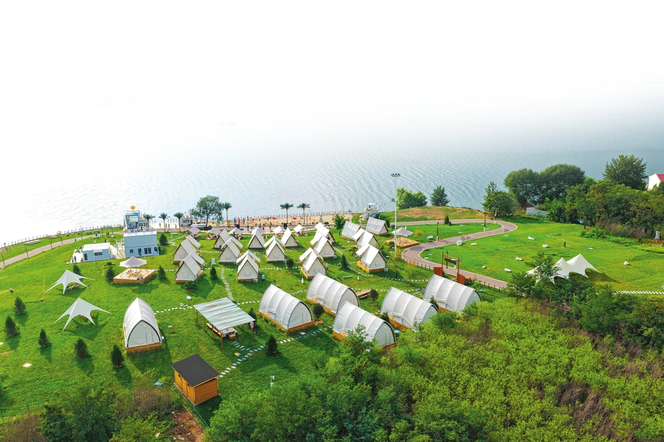 長治市漳澤湖MANA水岸度假區(qū)綠草如茵、碧波蕩漾。張國平攝