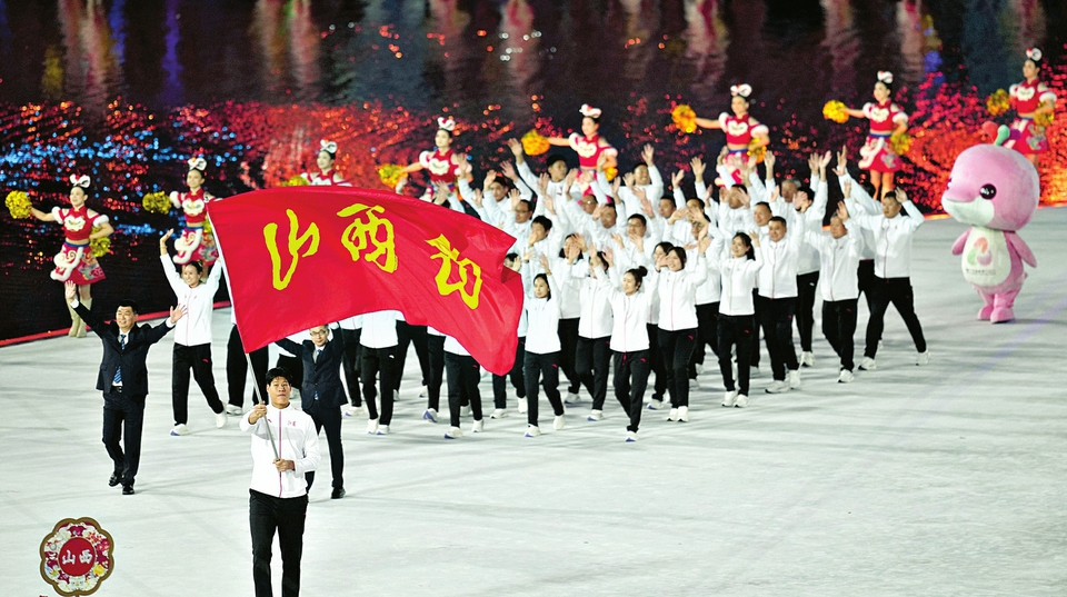 11月9日,第十五屆全國運(yùn)動會開幕式在廣東奧林匹克體育中心舉行。圖為當(dāng)日,山西省體育代表團(tuán)在入場儀式上。