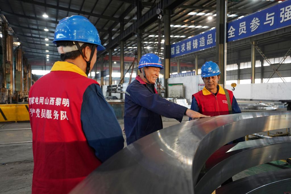山西-優(yōu)質(zhì)服務(wù)-2020年10月17日,國(guó)網(wǎng)定襄縣供電公司員工走訪山西富興通重型環(huán)鍛件有限公司了解用電需求1(邊武攝)