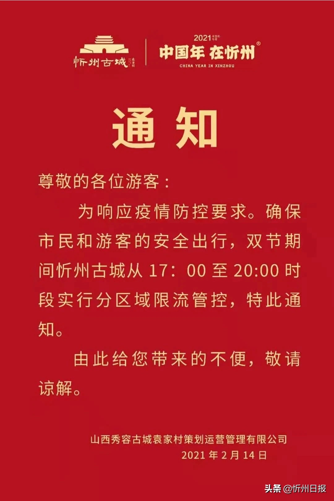 忻州古城發(fā)布最新通知!相互轉告