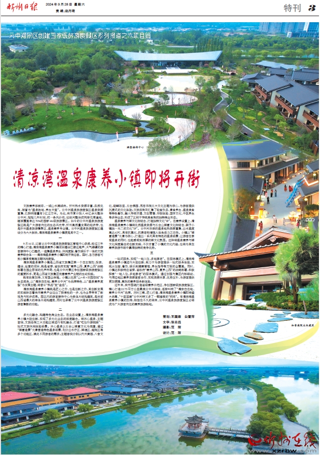文旅康養(yǎng)添新彩,一城山水滿城詩。忻州熱水資源豐富、品質(zhì)優(yōu)良,被譽(yù)為“溫泉?jiǎng)俚?、養(yǎng)生天堂”。云中河溫泉旅游度假區(qū)溫泉資源富集,已探明儲(chǔ)量有2億立方米。為此,我市累計(jì)投入48億余元整治云中河,短短幾年時(shí)間,把一條風(fēng)沙溝、垃圾河整治成兩岸花草遍地、植被覆蓋率達(dá)70%的國家4A級(jí)旅游景區(qū)。如今的云中河溫泉旅游度假區(qū)既是廣大游客向往的生態(tài)風(fēng)光帶、忻州高質(zhì)量發(fā)展的經(jīng)濟(jì)帶,也是忻州溫泉旅游集聚區(qū)、溫泉康養(yǎng)專業(yè)鎮(zhèn)。云中河溫泉旅游度假區(qū)建設(shè)分為六大板塊,清涼灣溫泉康養(yǎng)小鎮(zhèn)便是其中之一。