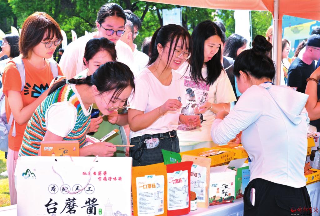 “忻州味道”農(nóng)特產(chǎn)品展在復(fù)旦大學(xué)邯鄲校區(qū)光華樓東草坪舉行。記者馮曉磊攝