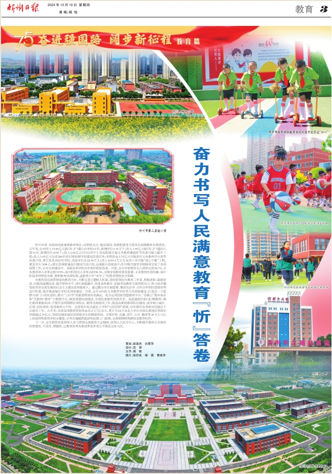 市教育局全面貫徹黨的教育方針,不斷完善立德樹人機制,團結(jié)帶領(lǐng)全市教育工作者,積極進取、砥礪奮進,在提高道德品質(zhì)、提升智育水平、深化體教融合、改進美育教學(xué)、加強勞動教育方面持續(xù)發(fā)力,努力培養(yǎng)德智體美勞全面發(fā)展的社會主義建設(shè)者和接班人。通過健全學(xué)區(qū)制管理、集團化辦學(xué)、合作辦學(xué)和托管幫扶等運行機制,穩(wěn)步推進城鄉(xiāng)學(xué)校共同體建設(shè)。目前,全市43%的義務(wù)教育學(xué)校參與共同體建設(shè),打造出一大批群眾家門口的優(yōu)質(zhì)校,群眾“上好學(xué)”的愿望得到有效滿足。充分運用國家智慧教育平臺、“晉教云”服務(wù)體系和“互聯(lián)網(wǎng)+教育”大數(shù)據(jù)平臺,推進智慧校園建設(shè),實現(xiàn)優(yōu)質(zhì)教育資源共享。高質(zhì)量組織招(選)聘教師,強化教師素能培訓(xùn),開展市縣兩級跨區(qū)域校長、教師交流輪崗工作,推進高素質(zhì)教師隊伍建設(shè),逐步縮小城鄉(xiāng)、區(qū)域、校際差距,促進教育公平性。全面落實免試就近入學(xué)和“公民同招”政策,切實做好各類新市民隨遷子女就學(xué)工作。五年來,發(fā)放各項教育資助資金共計5.7億余元,累計為24萬余名大學(xué)生發(fā)放生源地信用助學(xué)貸款超過19億元,持續(xù)加強家庭經(jīng)濟困難學(xué)生的精準(zhǔn)資助。實現(xiàn)忻府、定襄、原平、五臺、繁峙等20萬人口以上的縣特殊教育學(xué)校全覆蓋,分類實施隨班就讀和送教上門政策,全面保障特殊群體受教育權(quán)利。