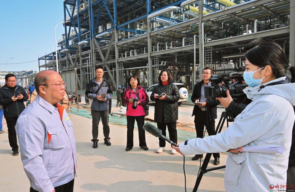 “省市媒體采風行”記者走進原平市同德科創(chuàng)PBAT一體化項目建設(shè)現(xiàn)場采訪。記者 馮曉磊攝