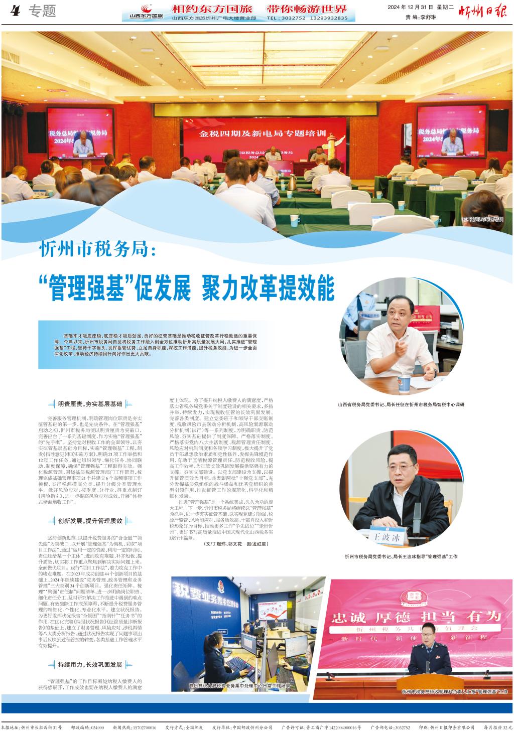 基礎(chǔ)牢才能底座穩(wěn),底座穩(wěn)才能后勁足,良好的征管基礎(chǔ)是推動(dòng)稅收征管改革行穩(wěn)致遠(yuǎn)的重要保障。今年以來(lái),忻州市稅務(wù)局自覺(jué)將稅務(wù)工作融入到全方位推動(dòng)忻州高質(zhì)量發(fā)展大局,扎實(shí)推進(jìn)“管理強(qiáng)基”工程,堅(jiān)持干字當(dāng)頭,發(fā)揮垂管優(yōu)勢(shì),立足自身職能,深挖工作潛能,提升稅務(wù)效能,為進(jìn)一步全面深化改革、推動(dòng)經(jīng)濟(jì)持續(xù)回升向好作出更大貢獻(xiàn)。