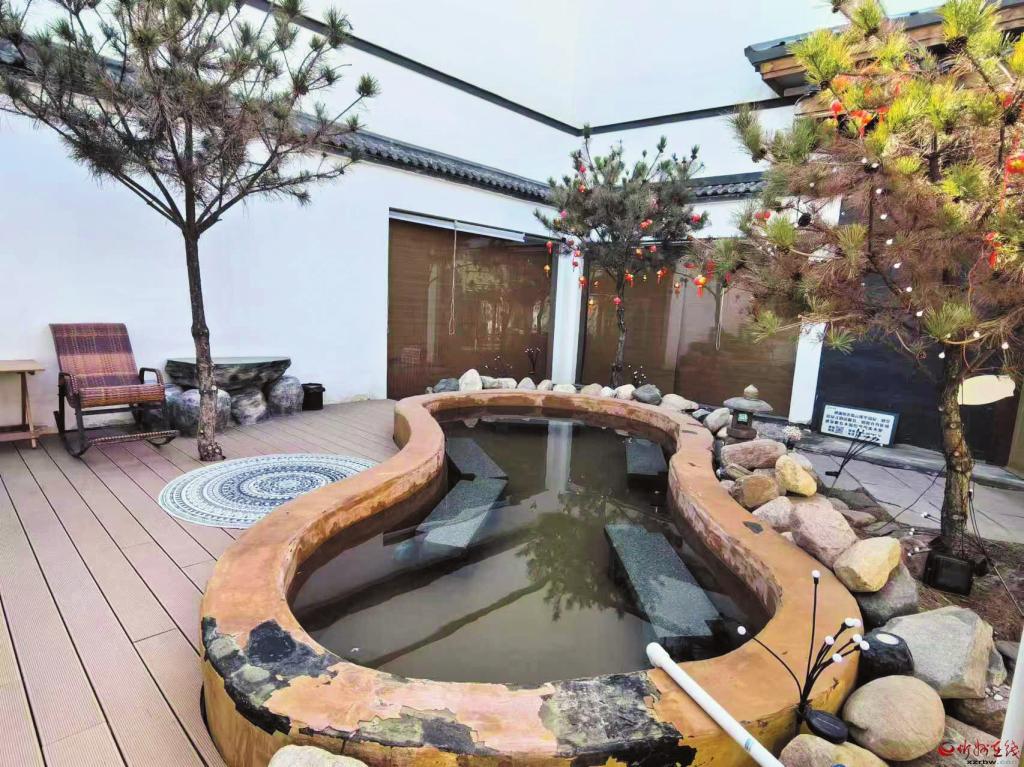 這家“升級(jí)版”的集餐飲、茶飲、溫泉康養(yǎng)、旅游度假于一體大型民宿占地近三畝,設(shè)計(jì)、建筑別具匠心。在有限的空間內(nèi),11個(gè)獨(dú)立的院落沒(méi)有“平鋪直敘”,通過(guò)朝向和方位的搭配互補(bǔ),造成了曲徑通幽的效果。連接11個(gè)小院的路面遍布草坪,行人落腳處是一個(gè)個(gè)星羅棋布的舊磨盤。這一農(nóng)耕文明元素的巧妙點(diǎn)綴只是一個(gè)細(xì)節(jié),卻足以看出經(jīng)營(yíng)者的良苦用心。11個(gè)院落就是11個(gè)獨(dú)立的溫泉民宿,院落、房間大小各異,內(nèi)部格局、設(shè)施布置也各不相同,一個(gè)共同的特點(diǎn)是充分考慮到了私密性。院內(nèi)、房間皆有造型各異的溫泉泡池,加水、放水皆由前臺(tái)智能調(diào)控。有的院落建起燒烤臺(tái),統(tǒng)一提供木炭和燒烤用具。實(shí)行“管家式”一對(duì)一服務(wù),精美茶點(diǎn)敞開供應(yīng)。當(dāng)街的餐飲、茶飲店起了個(gè)別致而有寓意的名字——“蒙太奇”,字面是電影剪輯術(shù)語(yǔ),暗含的意思是:歡迎內(nèi)蒙古、太原的游客來(lái)奇村……
