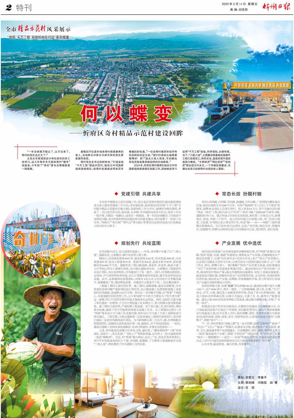 2024年,忻府區(qū)奇村鎮(zhèn)奇村結(jié)合云中河國(guó)家級(jí)旅游度假區(qū)創(chuàng)建工作,因地制宜學(xué)習(xí)運(yùn)用“千萬工程”經(jīng)驗(yàn),科學(xué)規(guī)劃、合理布局。當(dāng)下,“三線入地”、立面整治等基礎(chǔ)設(shè)施提升工程已全部完工,特色農(nóng)業(yè)、溫泉民宿升級(jí)改造強(qiáng)力推進(jìn), “夕陽經(jīng)濟(jì)”“網(wǎng)紅經(jīng)濟(jì)”“夜經(jīng)濟(jì)”新業(yè)態(tài)方興未艾,一個(gè)環(huán)境優(yōu)美整潔、充滿生機(jī)活力的新奇村出現(xiàn)在世人面前。