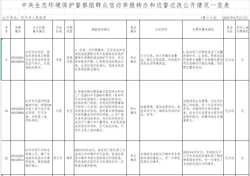 中央生態(tài)環(huán)境保護督察組群眾信訪舉報轉(zhuǎn)辦和邊督邊改公開情況一覽表(第十六批)