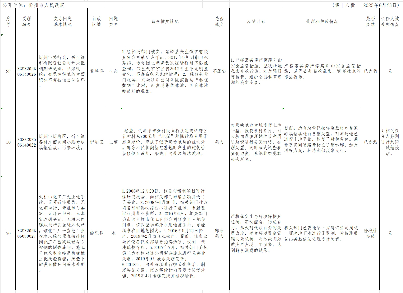 中央生態(tài)環(huán)境保護(hù)督察組群眾信訪舉報(bào)轉(zhuǎn)辦和邊督邊改公開情況一覽表(第十八批).xlsx