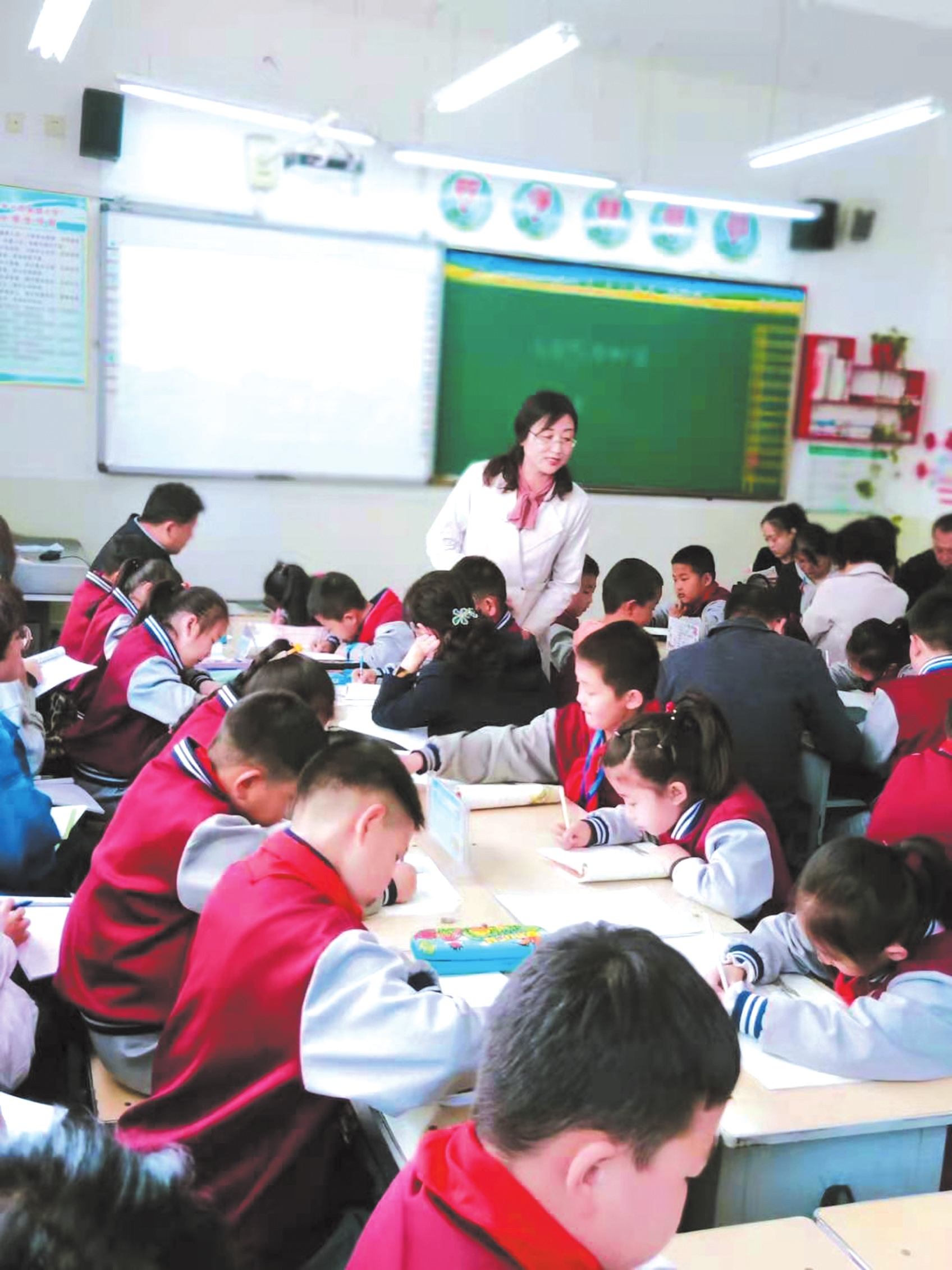 讓知識“活”起來,是興原教師的共同追求。常勇霞老師的英語課上,防震演練后的躁動被一首歌化解:“There was an earthquake drill.B-I-N-G-O.”孩子們唱著歌,就懂了“earthquake drill”的意思,既練了英語,又懂了安全。呂玉榮老師教《烏鴉喝水》時,沒按“標(biāo)準(zhǔn)答案”走。當(dāng)學(xué)生質(zhì)疑“水太少,烏鴉將石子銜滿瓶子也喝不到水”時,她立刻請孩子上講臺重做實驗??粗佣褲M瓶子,水位仍升不到瓶口,全班陷入沉思,而后迸發(fā)的“砸洞”“用吸管”等想法,比課本更生動。