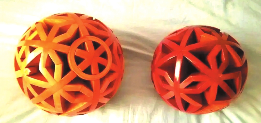 “沒(méi)用一顆釘子、一滴膠水,我們利用了榫卯技藝,讓108塊形狀各異的木構(gòu)件緊密連接,構(gòu)成一個(gè)鏤空的地球,祈盼世界團(tuán)結(jié)、人類(lèi)和平?!薄堕久挠钪妗肪巹?、忻州王爾文玩(魯班鎖、孔明鎖)(以下簡(jiǎn)稱“王爾文玩”)傳統(tǒng)木作技藝非物質(zhì)文化遺產(chǎn)代表性傳承人趙永功說(shuō)。