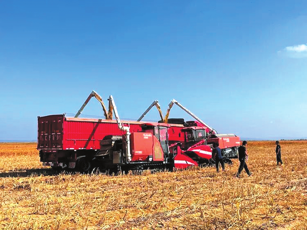 搭載北斗導(dǎo)航系統(tǒng)的聯(lián)合收割機(jī)作業(yè)現(xiàn)場