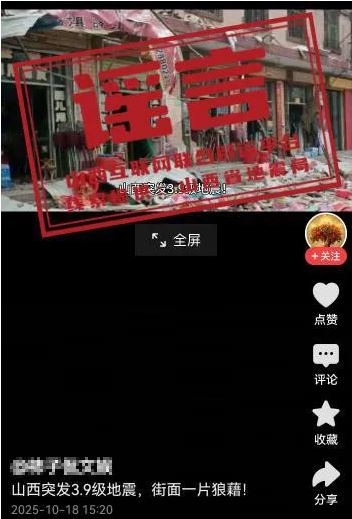 10月18日,有網(wǎng)民發(fā)布“山西突發(fā)3.9級(jí)地震,街面一片狼藉!”相關(guān)信息,引發(fā)網(wǎng)民關(guān)注,經(jīng)向相關(guān)部門(mén)確認(rèn),該信息與事實(shí)不符。