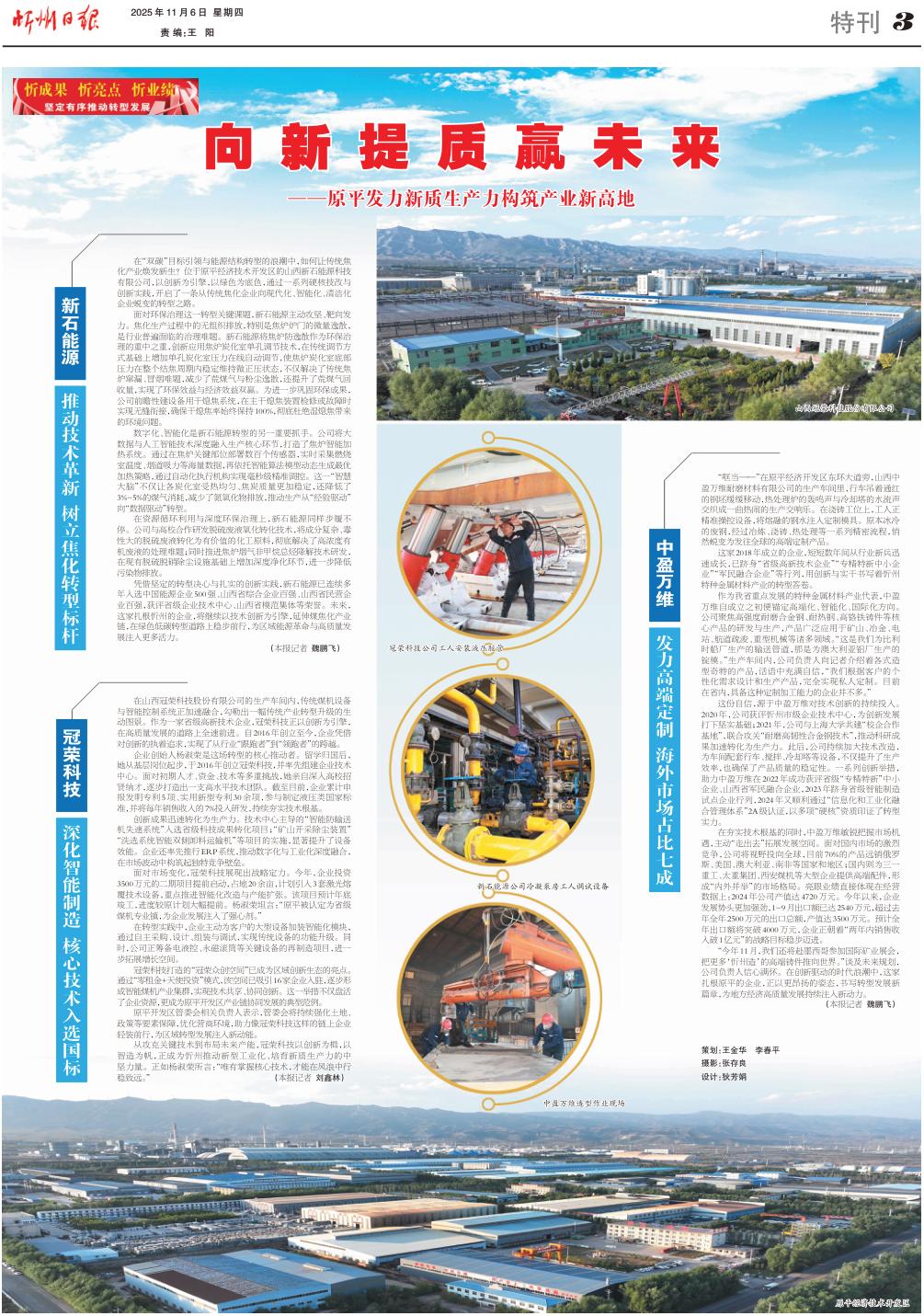 這家2018年成立的企業(yè),短短數(shù)年間從行業(yè)新兵迅速成長,已躋身“省級高新技術企業(yè)”“專精特新中小企業(yè)”“軍民融合企業(yè)”等行列,用創(chuàng)新與實干書寫著忻州特種金屬材料產(chǎn)業(yè)的轉(zhuǎn)型答卷。