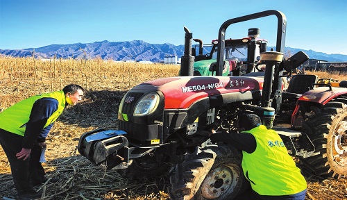 技術(shù)人員正對拖拉機進行全面“體檢”。 郭婧蕾攝