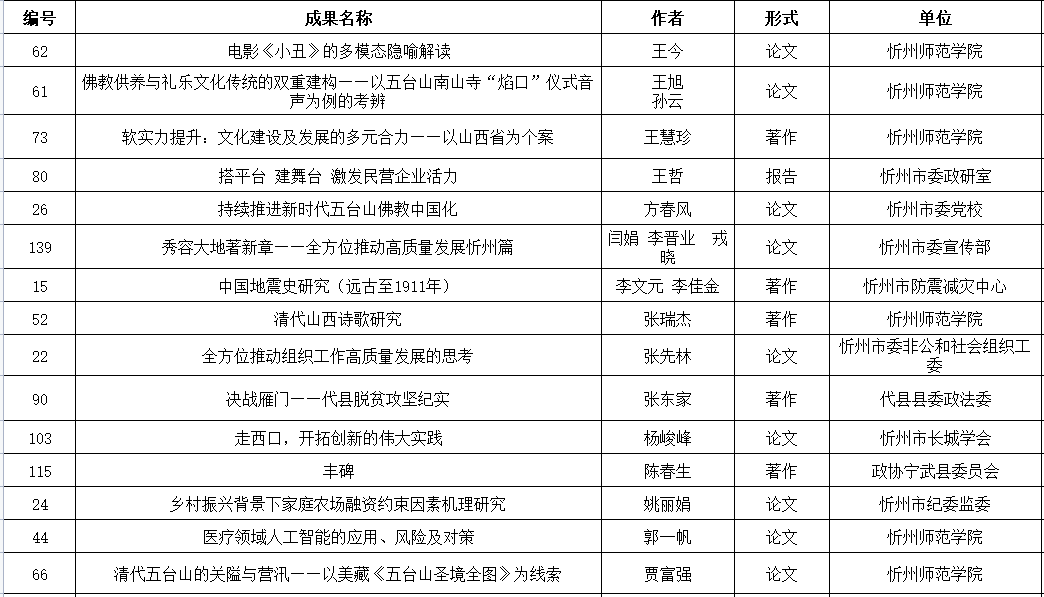 忻州市社會(huì)科學(xué)研究?jī)?yōu)秀成果一等獎(jiǎng)獲獎(jiǎng)名單(共15項(xiàng))(按姓氏筆畫(huà)排序)